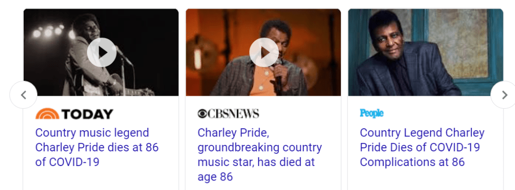 Charlie Pride has died at age 86. I enjoyed his music on occasion. And I feel sorrow that he has passed. My heart hurts for his family. They’ve lost a father, grandfather, uncle, and probably many more relationships.